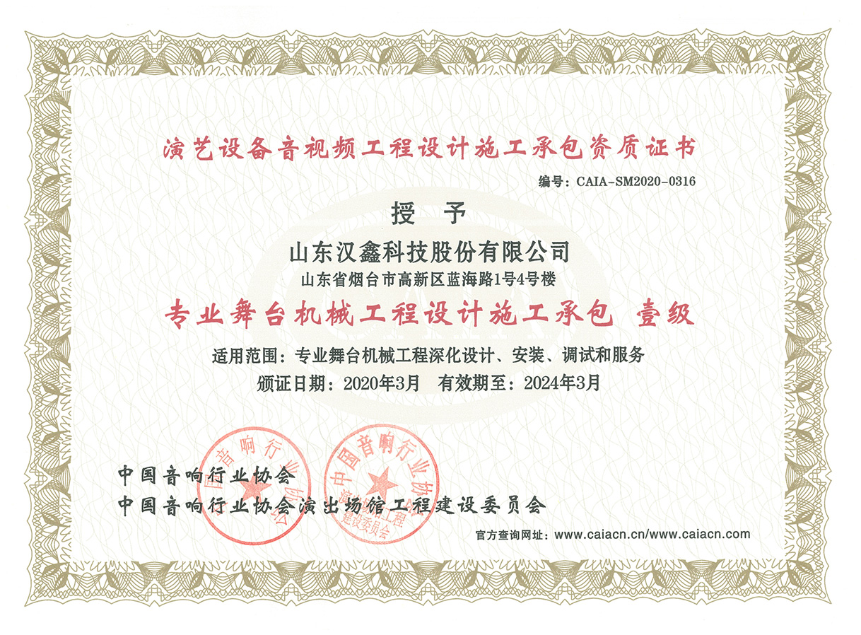 專業(yè)舞臺(tái)機(jī)械工程設(shè)計(jì)施工一級(jí)