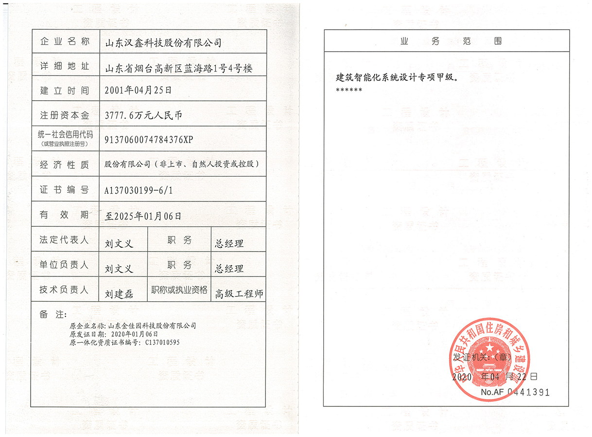 建筑智能化系統(tǒng)設(shè)計(jì)專項(xiàng)甲級(jí)