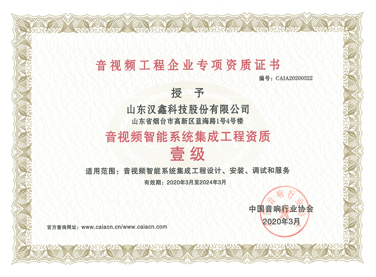 音視頻智能系統(tǒng)集成工程一級(jí)