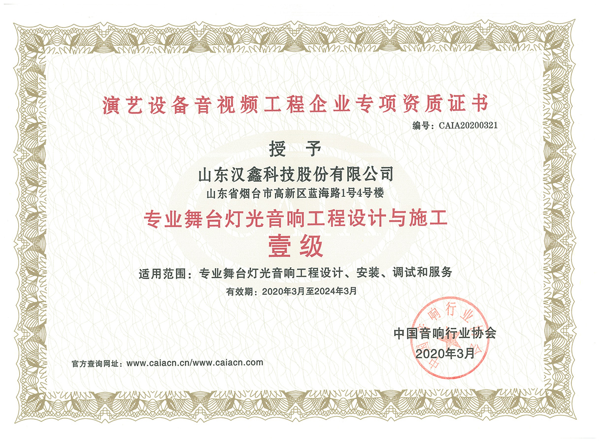 專業(yè)舞臺(tái)燈光音響工程設(shè)計(jì)與施工一級(jí)